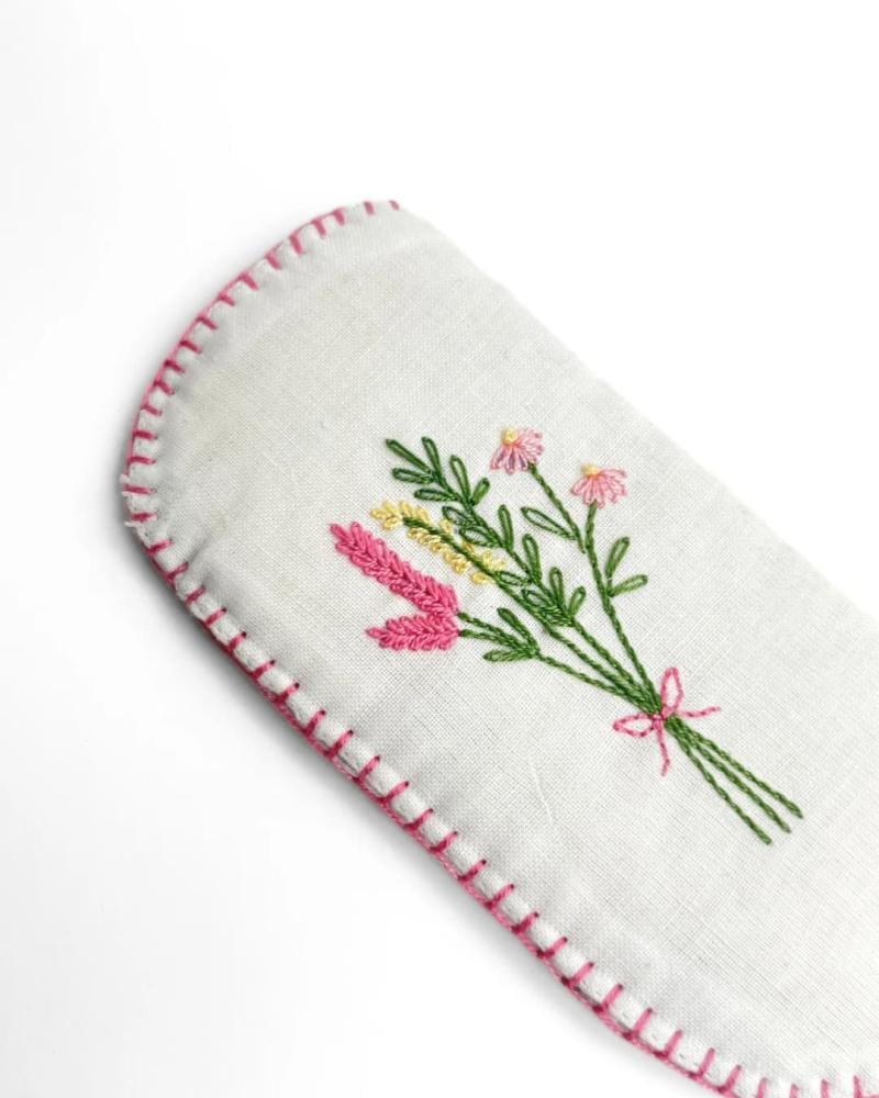 بيت نظارة مطرز يدويًا بتصميم باقة ورد مستوحى من جمال الطبيعة وألوانها الزاهية. يتميز بخفة وزنه وسهولة حمله داخل حقيبة اليد، ليمنح نظارتك حماية أنيقة مع لمسة فنية مميزة.